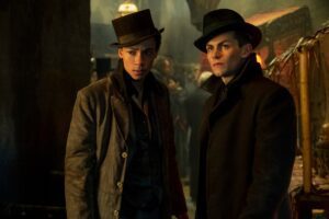Sadly, what kills the show’s momentum – repeatedly – is the cutting away to the city of Ketterdam and its characters: Kaz (Freddy Carter), Inej (Amita Suman) and Jesper. Every time the series abandons Alina and Mal, it’s jarring and never matches the quality of the Shadow and Bone side. It’s clear in the cinematography and editing: the locations in Ravka (Alina’s outpost, orphanage flashbacks, forest, palace) are real and it shows, or they’re more elaborate, believable sets. Ketterdam – real locations or not – feels like a soundstage. It becomes very clear very quickly that these two stories just don’t go well together, whether narratively, aesthetically or conceptually. Most disappointing is that the Ketterdam characters, beloved by so many fans, exist in this context largely to serve the Shadow and Bone story, which robs them of their own identities, as a unit and individuals. Many of their scenes, setups and lines of dialogue are rehashed from Six of Crows and cobbled together in this new context for surface-level fan service that never pays off. Whether the creators took their time with this plot or not, the result feels slapdash, undermines the key aspects of what makes these characters unique, and implies that they are not worthy of the same time and effort as the Shadow and Bone characters, story, or screen time.