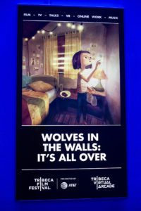 How wonderful it is to randomly select a movie, just because it is the first one you walk by, at the start of press hours when there is no line and discover that you have chosen a good one. Adapted from a short story by Neil Gaiman, Wolves in the Walls: It’s All Over places us in the nightmare that is young Lucy’s world, where scratchings and scampering from within the walls of her house indicate a sinister presence about to strike? Are they demons? Wolves? Demon-wolves? We move from space to space, following instructions from Lucy to pick up a magnifying class for a closer look, to hold a glass up to the wall for a closer listen, to crank a jar maker in the kitchen to create food for the wolves to eat (to hold them at bay), and more.