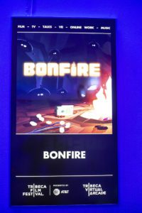 This was so much fun! Created by Baobab Studios, Bonfire places the viewer on an alien planet after a crash, accompanied only by a robot named Debbie. Baobab, according to CEO Maureen Fan, with whom I spoke at Tribeca, is committed to promoting stories that involve women and/or people of color, and cast Ali Wong as the voice of Debbie. She makes for an amiable sidekick, helping you to decide what to do when strange creatures emerge from the woods. Friends or foes, you decide, but how you decide and what you do has an effect on the experience. This is what VR can do well, placing you in a beautifully animated world and making you feel the complete immersion that the technology allows. The piece also raises ethical questions about the effects of colonialism and ethnic cleansing, sneaking in some important issues in the midst of the entertainment.