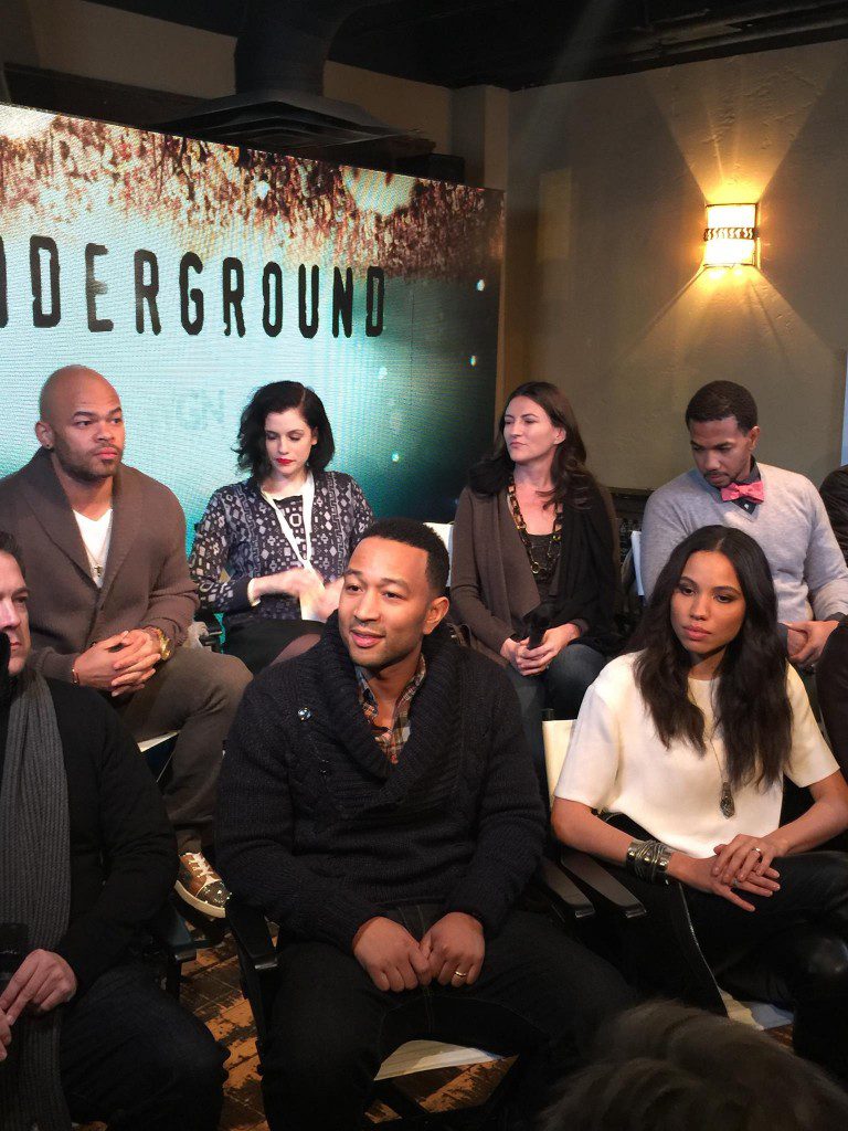 PARK CITY, UT – JANUARY 23: Executive producer John Legend, actors Jurnee Smollett-Bell and Alano Miller, producer Tory Tunnell, actress Jessica de Gouw and director/executive producer Anthony Hemingway attend the WGN America “Underground” panel at The Blackhouse, during Sundance 2016 on January 23, 2016 in Park City, Utah. (Photo credit: The Blackhouse Foundation)