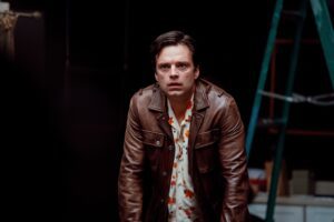 Pearson doesn’t show up until about halfway through the story. Sebastian Stan (Dumb Money)—an actor without neurofibromatosis—plays Edward, wearing a prosthetic mask for the early part of the role. Edward is deeply unhappy and depressed, and can’t even manage to report a growing hole in the ceiling above his Manhattan apartment until it becomes a repulsive eyesore. The only real light in his day comes from the woman who moves in next door.
