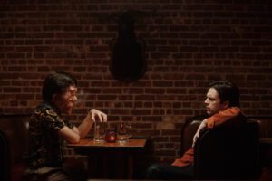 And that’s when Pearson shows up, as Oswald, another man with neurofibromatosis. Unlike Guy/Edward, Oswald does not see his condition as a barrier to full participation in life. He’s a gregarious extrovert with friends galore. His appearance explains why, earlier in the film, strangers would come up to Edward as if they knew him. Oswald’s personality and charisma are seemingly boundless.