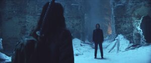 After her father’s murder, Eve is taken in by Winston (Ian McShane, returning to the franchise), manager of the New York Continental Hotel for assassins. Winston introduces Eve to her father’s people: the Ruska Roma, a group of Belarusian tribes seen in Chapter 3 who shape young people into accomplished dancers and killers. Their leader, known only as the Director (Anjelica Huston, also returning), becomes Eve’s mentor figure/surrogate mother. While Eve and Wick share a desire for vengeance, his story is one of simple motivation while her story is full of twists and turns.