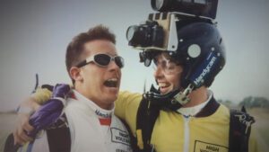 Sometimes, boys with toys grow up to be men with even larger toys. In the new documentary Space Cowboy, from directors Bryce Leavitt and Marah Strauch (Sunshine Superman), we meet one such lucky gent, Joe Jennings, who has built a life throwing large objects out of airplanes and skydiving after them with a head-mounted camera to film their descent. It’s exciting stuff, and also quite dangerous.