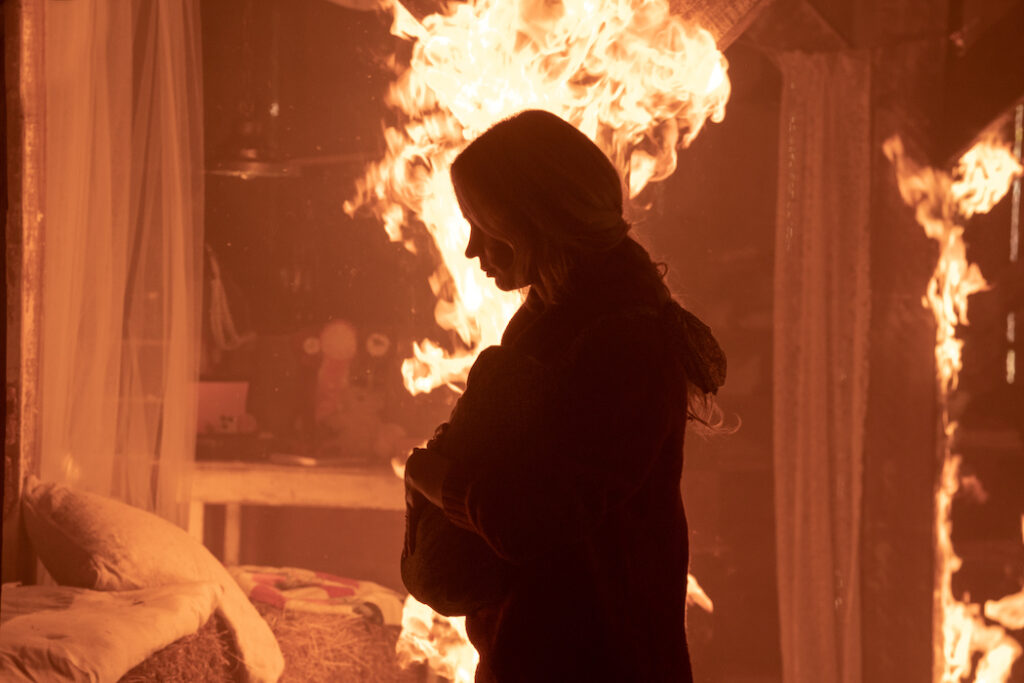 And, you guessed it, there waits Emmett, his own family now deceased. Unfortunately for Marcus, he gets caught in one of Emmett’s booby traps on the way over, though his cries of distress lead to some nice, subsequent scares and action. While he suffers, Regan forms a plan, as she has figured out what the recurring song they hear on the radio, Bobby Darin’s “Beyond the Sea,” means. Asking no one’s permission, she takes off to find help, followed closely by would-be rescuer Emmett, while Evelyn goes into town to grab pain meds for Marcus. The resultant parallel editing between three different scenes (Marcus left alone with the baby is the third) ratchets up the tension in the best kind of way, while also adding new story information. All goes well, until a bit of a disappointing finish.