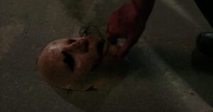 The list of errors and grievances within this film goes on and on, but a major cinematic mishap of Chop Chop is the awkward and disorganized pacing of the film. Unmotivated pauses, sloppy and poor editing, and a strange and unfitting sound design make the entire film, from start to finish, an uncomfortable experience. The film mostly has no score or background music/sound, giving it a dry and lame presentation, one that hardly creates any sense of tension or thrill. The dialogue does nothing to reinforce the poor audio, resulting in cheesy and untimely performances by essentially every actor on screen, with random, loosely explained characters being introduced left and right. It is unclear whether the film is attempting to be a genuine addition to the horror franchise or a satire making fun of the genre, as the pacing is so God-awful that the film’s journey never coheres.