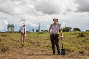 l-r: Mads Brügger and Göran Björkdahl dig for facts in COLD CASE HAMMARSKJÖLD ©Magnolia Pictures