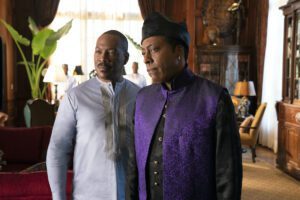 Unfortunately, much of the humor feels like it never left the 1980s, grounding us in a now-archaic worldview, which is not surprising given that screenwriters Barry W. Blaustein and David Sheffield also wrote the original film, though they are here joined by Kenya Barris, showrunner of Black-ish (and more). Yes, there is an important shift forward with Meeka’s dramatic arc, but then there is also a painful joke poking fun at the notion of gender transition. There is also very little examination of the power dynamics within and between African nations of different means, which wouldn’t matter if the plot didn’t hang on that very difference, given that Nextdooria suffers while Zamunda thrives. And how exactly does Zamunda thrive and why do we celebrate such clearly authoritarian rule? Yes, it’s a fantasy, and meant to be a comic one, at that, but one kind of modernizing (Meeka) raises the stakes, demanding more. Laugh all you want, but some things just aren’t funny.