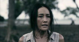 What’s interesting about Death of Me is the way it uses and revisits the supporting cast members to create a more-than-supernatural reasoning to be afraid. The imagery and set/costume design of a culture with primordial, if not unexplainably creepy, traditions allows for a detachment from reality. The villainous presence in the story is not solely the demons and spirits that torment the undead Christine, but the secret that seemingly everyone on this small Taiwanese island refuses to explain. The establishment of Christine and Neil not being able to trust anyone on the island gives the film a very real, relatable and gradual terror, if not one relying on convenient and improbable circumstances.
