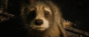 Which proves a winning decision, for as he lies dying we are treated to an engaging backstory. It’s a moving set of flashbacks, taking us from baby Rocket to the adult raccoon we know and love. Along the way, we meet a new antagonist, known as “The High Evolutionary” (Chukwudi Iwuji, Shine Your Eyes), responsible not only for Rocket’s transition to higher intelligence (and bipedal posture) but so much more. He may have thematic similarities to Kurt Russell’s villain from Vol. 2, but the surrounding plot details prove more affecting.