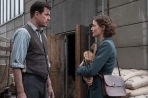 l-r: Claes Bang and Vicky Krieps as Minna Holmberg in TriStar Pictures’ THE LAST VERMEER ©2020 CTMG. All Rights Reserved.