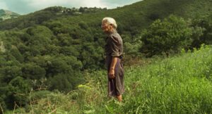 Do not let that description fool you, however, for this is a film where not much appears to happen, unless one finds the daily management of a tiny family farm of great interest. And it is not without a certain kind of fascination, whether we see Amador roaming the hills with an old shepherd dog by his side, guiding his mother’s cows in their peregrinations, or Benedicta working her elderly, if still vibrant, body through the thick foliage that surrounds her place. The local townspeople come into play towards the end, when all hell doth break loose, but for most of the movie we are alone with our two central characters and their animals.