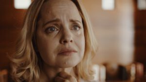 Based on Ken Wilber’s eponymous, autobiographical 1991 book, Grace and Grit opens by way of a framing device. Treya Wilber (Mena Suvari, Locked In) begins a speech on stage, telling us how she “met and totally fell in love with” Ken Wilber (Stuart Townsend, A Stranger in Paradise). We’re then flung back in time to witness their meeting cute, whirlwind romance, fairy-tale wedding, and then bombshell breast-cancer diagnosis. The rest of the film proceeds to tell the familiar tale of fighting illness, struggling to find the balance between relating true events and narrative storytelling. The result is a baffling mix of realism that lacks depth, metaphor that lacks consistency, and crucial plot beats that are almost entirely told, not shown.