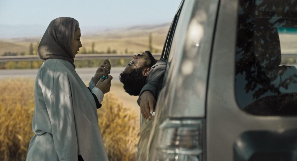 Along the way, we spend time in the company of a vibrant collection of personalities. Mom (Pantea Panahiha, Breath) is mostly no-nonsense, though capable of sudden flights of whimsy; Dad (Hasan Majuni, Pig) is the curmudgeonly jokester of the bunch, his leg in a cast from some previous mishap; Farid (Amin Simiar) is the future exile, and the one driving, and is anything but joyful; and then there’s the youngest (Rayan Sarlak), a bundle of energy who never lets up. They argue, laugh, and sometimes sit in pensive silence, just like any other family, and also uniquely their own thing.