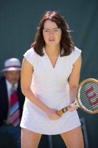 Directors Jonathan Dayton and Valerie Faris (Little Miss Sunshine) plunge us head-on into the early 1970s, just as King wins the 1972 U.S. Open, capping a season that puts her at the top of the women’s rankings. That victory is marred by the revelation, just afterwards, that women’s earnings, already far lower than men’s, will be reduced even more in an upcoming match. A proud “women’s libber” (as feminists were then called). King responds by creating the Women’s Tennis Association (WTA), convincing enough of her fellow top players to join that the new organization poses a real threat to the established order. The tour’s sponsor? You got it, baby: Virginia Slims (now that really is quaint, a cigarette company sponsoring sports).