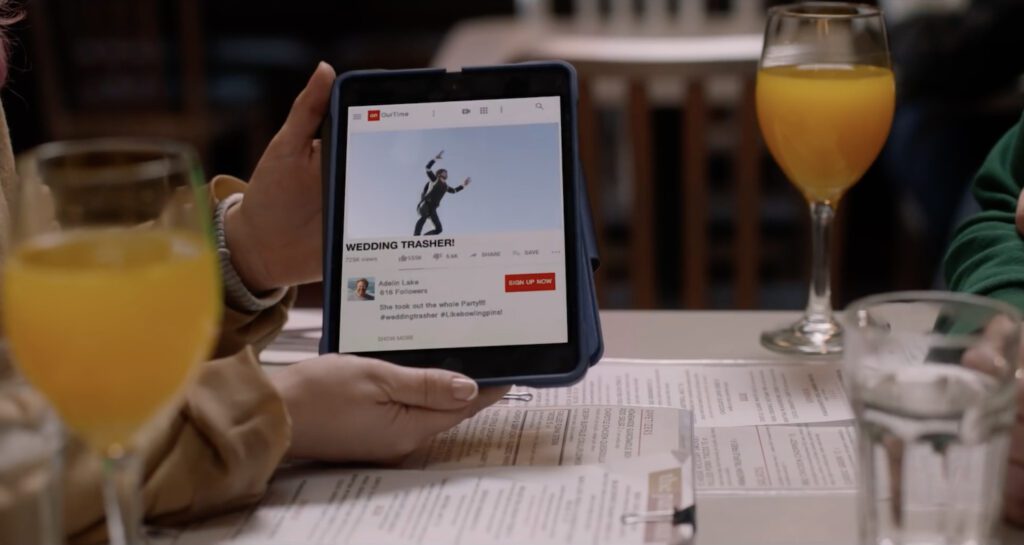 The plot, such as it is, centers around a florist (I think she’s a florist, or maybe she’s an event planner), played by Grace, hired by one of Boston’s mayoral candidates to plan his upcoming wedding. Or rather, it’s his fiancée who does the hiring, since neither she nor he can agree on anything and he just gives in on this one. In an opening prologue, we see Grace throw her own fiancé out of a plane when he hesitates to skydive, after which he breaks up with her midair, after which she dumps him in a lake and then, herself, lands on top of an outdoor wedding. The resultant video recording of the event lands her instant viral fame as the “wedding trasher,” so now single and wanting to earn a new moniker, she takes the new wedding gig. Ha, ha!