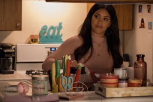 There is no film or TV show that the presence of actress Gina Rodriguez (The CW’s Jane the Virgin) does not, in some way, improve. Versatile in both comedy and drama, she always comes prepared with just the energy required. Such is certainly the case in Kajillionaire, the third feature from writer/director Miranda July (The Future). It’s a film already strong before Rodriguez’s arrival, made even more so once she effortlessly joins the cast.