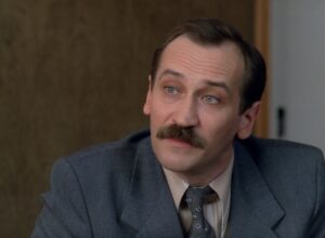 Our hero, Aleksei Varakin (Leonid Filatov), travels on a mission from Moscow to a provincial town. He’s an engineer sent to fix the way a local factory makes air-conditioning units. Once there, he quickly finds himself derailed in what soon becomes a Kafkaesque nightmare of the absurd. The first clue that something is rotting in the state of Russia is when the factory director’s secretary is completely naked at work, with no one (except Varakin) batting an eye. From there, matters only grow stranger.