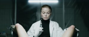 Ditlevsen plays Mia, married to Thomas (Anders Heinrichsen, The Pact). She’s an equestrian and he a wealthy financier, connected via somewhat shady means (beyond even his full comprehension) to a cutting-edge medical-research firm run by one Dr. Isabel Ruben (Signe Egholm Olsen, Wild Witch). Ruben (everyone just addresses her by her last name) wears a pristine, white lab coat, but though she may look the part of a respectable professional, she is anything but. Down in the basement of a dark, dank warehouse, she conducts unspeakable experiments.