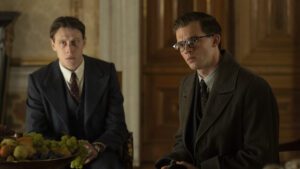 We start in 1932, at England’s Oxford University, where two classmates—the British Hugh Legat (George MacKay, Wolf) and German Paul von Hartman (Jannis Niewöhner, Je Suis Karl)—celebrate their graduation. Fate will bring them together again later, but in the intervening 6 years they go very separate ways. By 1938, Hugh is an up-and-coming assistant to Chamberlain and Paul is a diplomat who has come to regret his initial embrace of the Nazi Party (an embrace which killed the friends’ relationship). As Hitler prepares to invade the neighboring Czechs and reclaim the Sudetenland for the Third Reich, Paul comes across documents which reveal the dictator’s larger plans for European conquest. If he can just get them into the hands of his old acquaintance, perhaps he can stop Chamberlain’s policy of appeasement before the PM signs an agreement with Hitler at the upcoming conference in Munich.