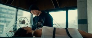 At first there are two parallel stories that don’t appear to connect, yet eventually do. In one, we meet Evan (Robbie Amell, Resident Evil: Welcome to Raccoon City) and Faye (Jordana Brewster, Who Invited Charlie?), a married couple whose onscreen introduction is via an oddly edited sex scene. Next, we have Kessler (Sam Worthington, Avatar: The Way of Water), a detective working for AICE (Artificial Intelligence Compliance Enforcement), in hot pursuit of a rogue, unregistered android named Esme (Alicia Sanz, The Devil Below), who may be linked to an outlaw programmer named Casey (Simu Liu, Shang-Chi and the Legend of the Ten Rings). It’s the near future, and as in so many dramas about humanity’s potential collapse, AI may have it in for us.