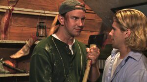 Scare Zone is a film which works for a certain audience yet might not for others. As a huge fan of these types of horror attractions, I enjoyed almost every minute of the film. The tour Oliver gives at the beginning is very intriguing, revealing certain tactics scare actors use and how intricate scenes are set up for maximum scare potential. It’s quite compelling to see the work that goes into setting up, running, and advertising for a small, independent haunted maze. The set design is excellent, though I’m unsure if the majority of it was simply in place already thanks to Universal or how much work was done specifically for the film. Either way, the atmosphere is quite chilling. The impressive set design leads to a tragic irony: the fact that real deaths in the film are overlooked and dead bodies appear like props, leading the guests who walk through to suspect nothing. This creates great tension and gives the killer the upper hand.