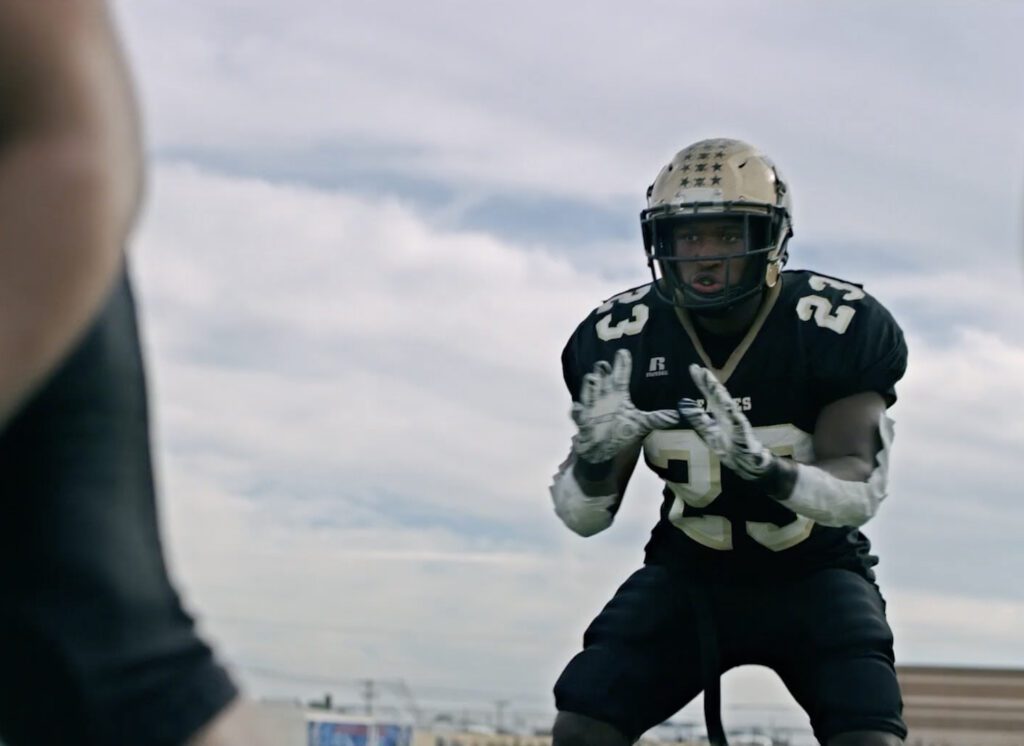 Sadly, the underwhelming performances and disappointing characters are only one part of the film’s issues. Technically, the film is a mess. There are unnecessary and distracting jump cuts used in a few scenes, some audio issues and low-grade cinematography, and second-rate editing. The most frustrating issue, though, is the filmmakers’ choice to use what I assume to be actual game footage from the Abilene Eagles’ 2009 season. Not only is the footage grainy and of poor quality, but the shots are reminiscent of a SportsCenter highlight reel with no cinematic quality to them whatsoever. Even worse, when we finally see the characters in the film out on the field in cinematic shots near the end of the film, it is interspliced with the old footage of the actual team, to atrocious results. Many of the plays from the actual game that they attempt to replicate do not look similar at all, and the players even wear different numbers in the cinematic shots than the actual players wore in the real game, further baffling the viewer. The opposing team’s quarterback, for example, wears a different number in the cinematic shots than the actual game footage, which is painfully obvious and incredibly distracting.