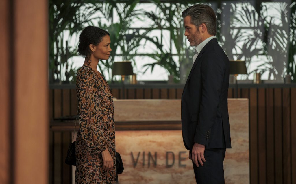 But even within the first few moments, there are a few subversions of genre. Rather than CIA headquarters, the main characters are stationed in Vienna, Austria. The two main characters, CIA operatives Henry Pelham (Chris Pine, The Contractor) and Celia Harrison (Thandiwe Newton, HBO’s Westworld series) are in a relationship, one which they make no effort to hide. And rather than a race against time to save the world, or a Le Carré-like intellectual chess match, director Janus Metz (Borg Vs. McEnroe) traces the aftermath of the operatives’ failure.