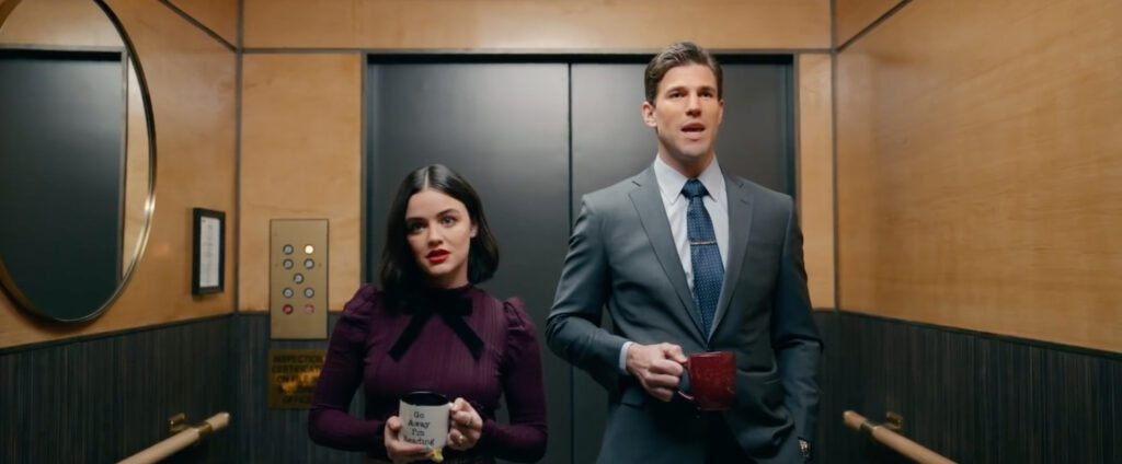 Lucy (Lucy Hale, Son of the South) and Josh (Austin Stowell, Fantasy Island) are coworkers at a publishing company. Despite their obvious sexual tension, they hate each other. Supposedly. Lucy adores literature and decorates her side of their shared office with natural wood and vibrant colors. Josh seems not to love anything besides needling Lucy and decorates his side of the office in varying shades of concrete and chrome. They are ridiculously attracted to each other, and each is ridiculously oblivious that their attraction is reciprocated. The plot is thin, but that’s not a weakness. We as viewers don’t care why Lucy and Josh banter and almost-kiss and then banter again; we’re just here for the ride.