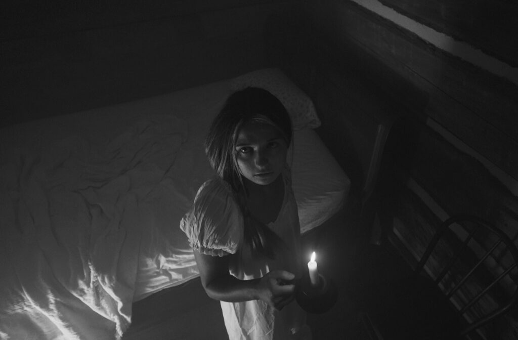 The documentary does a good job of collecting almost all available pieces of information, historical documents, testimonials and stories involved around the legend of the Bell Witch. While the doc doesn’t really present these items in any new, unique or creative way, it manages to convey the data in a simple, frightening and intriguing fashion. Sometimes there’s nothing more terrifying than a scary story told plainly without flashy elements. The film’s visuals consist of still shots of the town of Adams, excerpts from books and articles, and black-and-white reenactments of the events that occurred. I think the filmmakers are shooting for an old, creepy visual aura in the film and they certainly achieve that.