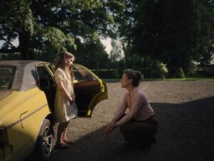 The older, childless couple that takes her in consists of Eibhlín (Carrie Crowley, Extra Ordinary) and Seán (Andrew Bennett, Black ‘47). Very much unlike Cáit’s hard-drinking, gruff father (Michael Patric, A Dog’s Purpose)—who grumpily chauffeurs the girl—Eibhlín is the picture of kindness. Seán is more reticent, though he will eventually warm up. They have a tragic, not-all-that-hard-to-guess secret that they keep from Cáit, but which will eventually come out in its own pitiable way, serving to strengthen the bond between all three. Slowly, in fits and starts, they begin to form a companionable family, in sharp contrast to Cáit’s own.