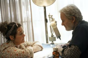 The Starling is a jumble of emotional turmoil and bizarre encounters. Ostensibly, the plot revolves around married couple Lilly (Melissa McCarthy, Thunder Force) and Jack (Chris O’Dowd, How to Build a Girl) in the aftermath of the death of their daughter, Katie. Jack now resides at a psychiatric facility, New Horizons, and Lilly struggles to hold down her grocery-store job and combats the titular, territorial starling, which leads her to therapist-turned-veterinarian Dr. Larry Fine (Kevin Kline, Ricki and the Flash).