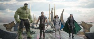 Marvel Studios’ THOR: RAGNAROK, L to R: Hulk (Mark Ruffalo), Thor (Chris Hemsworth), Valkyrie (Tessa Thompson) and Loki (Tom Hiddleston) ©Marvel Studios 2017