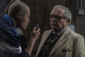 The film begins with a car parked on a lawn outside of a large, old house. In the car are three young men: the stoic leader of the group Nathan (Ian Kenny), the jittery and foolish Terry (Andrew Ellis) and the psychotic and maniacal Gaz (Jake Curran). The three friends sit outside the house with binoculars, waiting for the owners to leave the house so they can enter. Terry’s mother happens to work for the elderly couple that owns the place and has told Terry that there is a safe with a large amount of money in the basement of the house. Terry has passed this information along to Nathan and Gaz, and the boys are hoping to score. However, Nathan’s girlfriend, Mary (Maisie Williams, The New Mutants) arrives and demands to have the car, as she needs it for work. The owners leave, and Nathan convinces Mary to come inside with the boys and they’ll be done shortly. However, the owners of the home, Dr. Huggins (Sylvester McCoy, Slumber) and his wife Ellen (Rita Tushingham), come back in the midst of the robbery, and the tables begin to turn.