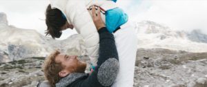 A 2017 film from German director Jan Zabeil (The River Used to Be a Man), Three Peaks (“Drei Zinnen”) has finally secured an American release, and we are lucky to have it. Gorgeously photographed in the Italian Dolomites – that Alpine range in the north of the country – the movie follows a mother, father and their 8-year-old son on what begins as an idyllic mountain retreat but soon turns as sharply dangerous as the jutting peaks of the landscape. The inciting incident that transforms paradise into peril is young Tristan’s growing disaffection with the adults’ romance. For, you see, neither Lea (mom) nor Aaron (dad) are married; in fact, Aaron is not really Tristan’s father, but merely Lea’s boyfriend of two years. And despite what seems, at first, like a tender bond between boy and man, there is a simmering rage lurking just beneath the surface of Tristan’s developing consciousness. What results is a harrowing, entirely gripping high-stakes, high-altitude drama where microaggressions lead to macro-results.