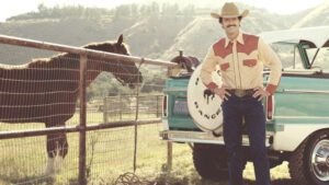 In a year of pandemic carnage, social unrest and political corruption, a year that cannot end soon enough, I am more than happy to accept the new Hulu mockumentary short, John Bronco. John Bronco, portrayed by Walton Goggins (Them That Follow), is the salesman to end all salesmen. At least, that is what the people who know the man would argue if you stopped them on the street. Bronco appears to be more than a regular man, and the Ford Motor Company senses that unattainable masculinity and hires him to be the official spokesperson for their new sports utility vehicle, the Ford Bronco. The steps to fame are as slippery going up as they are going down, and we learn that John Bronco will prove that theory, face first.