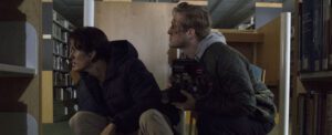 Stoker Hills begins with two college filmmakers, Ryan and Jake (David Gridley, Lady Driver, and Vince Hill-Bedford, American Fighter), pitching their final class project and setting out to create a “zombie-stripper” short, casting Jake’s girlfriend Erica (Steffani Brass, Reawakened) in the lead. Things go horribly wrong when a strange, hooded entity kidnaps Erica, forcing Ryan and Jake into dangerous pursuit to save their friend. As the three find themselves entrapped by the hooded menace, a pair of detectives, Stafford and Adams (William Lee Scott, The Brawler, and Eric Etebari, Alone) uses the filmmakers’ found-camera footage to track them, and the kidnapper, down.