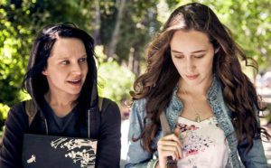 Which is funny, because Marina (or Ma Rina, as she writes her social-media profile name) spends most of the film in another dimension (do you really want to know?). We’re at a nondescript coastal college, where partying and Facebooking rule the day. Laura’s got it all: friends, lover, and a cool new apartment into which she has just moved with her two besties. But then this goth weirdo shows up in one of her classes, eyeballs the back of her head, and before you know it, sends Laura a friend request. Out of pity (Ma Rina has zero friends, highlighted by repeated close-ups of her profile status), Laura accepts, and then the stalking begins. Later, there will be blood, but we know this, since all manner of future atrocities are telegraphed through the music, Ma Rina’s lack of color, and those indicative facial ticks.