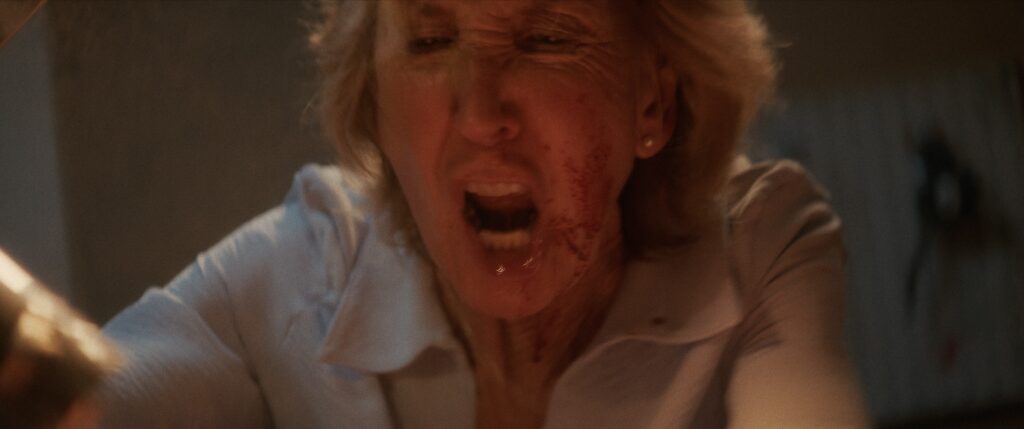 In the movie, Dee (Natasha Henstridge, Condition of Return) arrives at a remote retreat in the woods. She is greeted by Beatrice (Lin Shaye, Insidious: The Red Door), who shows her to her room in a house and asks for Dee’s cellphone. Dee is one of many guests who are staying there for the weekend.