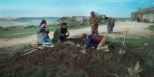 Josh O’Connor (Mothering Sunday) stars as Arthur, an Englishman somehow adrift in central Italy. When we first encounter him, on a train, he is on his way back from prison, where he served a term for the aforementioned robbing of graves. Not just any, to be fair, but older ones from the Etruscan period. He and his friends/colleagues dig up the goods and then sell them to a mysterious fencer named Spartaco. On the last job, Arthur was the one nabbed.
