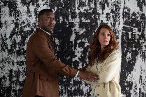 But suddenly, at the beach, things take a turn for the decidedly odd as an oil tanker barrels straight towards them from far away, eventually grounding itself to everyone’s shock and surprise. That’s hardly the end of it. Soon, in the evening, the owner of the house, G.H. Scott (Mahershala Ali, Swan Song), shows up with his college-age daughter, Ruth (Myha’la, Dumb Money) in tow, offering a reason that strikes the Sandfords (well, Amanda, anyway) as suspicious. Still, it’s not a good look for a bunch of white folks to refuse to believe that a well-dressed Black man actually belongs there. Then again, who just shows up at their own Airbnb, requesting entry?
