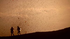 Dosa starts at the end and then cycles back to the beginning, showing how the Kraffts got started, first individually and then as a pair, all along educating the viewer about the science of volcanoes. Disillusioned with the politics of the late 1960s, when regimes across the world were taking a turn to the right, our protagonists turned their attention to the natural world just as humanity was gaining a greater understanding of plate tectonics. Over the ensuing decades, we follow them across the globe, from Iceland to Zaire to the United States to Colombia and beyond, adding to their knowledge as they go.