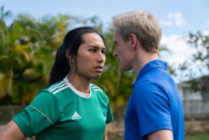 It’s very clear that this film is a love letter to American Samoans and their home and culture, as well as a sincere nod to nonbinary and trans people that wrestle with the restrictive rules and regulations not only enforced on them by the sports that they play but also the society that they live in. Jaiyah is a trans woman on an all-male football team—accepted and protected by the entire team—and the fact that she is a main character in the film is absolutely monumental. But the movie is not perfect.