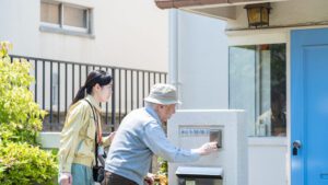 Taking readings, Sanae is called over by an elderly resident of the apartment complex, who insists she take a bag of mandarins while also informing her that a 93-year-old man in the same building has gone missing. As Sanae continues on with her tasks, she happens to come upon the old man, whom she tries to help, though with initially limited success. Walking with him, she once again passes by Chizu.