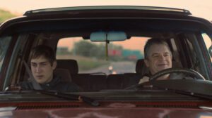 This is particularly true given where the story starts. After an opening scene in which Chuck’s basic duplicity is established, the credits roll, and under them we hear a montage of the many years of disappointing and flaky voicemails Franklin receives while growing up. Cut to the latter, now an adult, in a group-therapy session for those who have attempted suicide. Clinically depressed, he nevertheless returns home with mother Diane (Amy Landecker, Project Power), making the decision to finally cut off all lines to Chuck, who continues to be nothing but bad news. Everything that then occurs does so in this context: suicidal son, narcissistic father making things worse.
