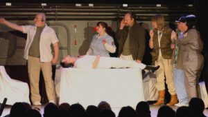 When their amateur-theatricals group decides to take a break from its annual pantomime performance by trying something new, the time and effort they put into a staged re-enactment of Scott’s movie go virtually unnoticed, very few locals coming to the lone performance. But then, somehow, certain folks from the capital (aka Harvey and Kummer), find out about the show and start crowdfunding to bring it to the West End (London’s theatre district). The rest is magic.