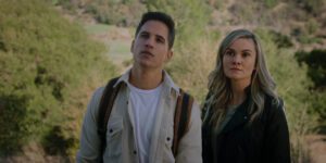 We follow an unlikely group of friends as they travel to a campsite rumored to be haunted by demons. The trip is led by Holly (Cathy Marks, Sorry, Charlie), a documentary director who planned the trip to begin with; her partner and cameraman, Matthew (Mike Manning, The Way Out); Megan (Alexis B. Santiago, All the World Is Sleeping) the documentary’s host and local influencer; Megan’s boyfriend, Gabriel (Capri-Antoine Vaillancourt, Killer Stepmom); and Liam (Reid Miller, Joe Bell), the shrimpy owner of the RV they took this trip in. They are all introduced after a quick teaser meant to draw the viewer in, which features Hank (Randy Couture, Expend4bles), our assumed antagonist, as well as the swift, gruesome murder of two young adults.