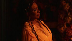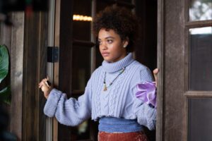 Writer/director Tayarisha Poe (Selah and the Spades) no doubt grasps the ordinary nature of her main character’s dilemma, and so attacks it from many angles at once, hoping to enliven the proceedings. Celestina (Kiersey Clemons, Susie Searches) has invited her entire network of friends and family to a celebration of her nuptials, held at her mother’s house on the Georgia coast. As successive guests arrive, the narrative stops and starts, interrupted by onscreen text and quasi-supernatural moments where not only Celestina’s consciousness appears to fracture, but ours, as well.