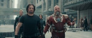 When Valentina finds herself investigated by a United States House of Representatives committee over corruption charges—a committee on which newly minted Brooklyn congressman Bucky Barnes/The Winter Soldier (Sebastian Stan, A Different Man) serves—she decides to destroy the evidence of her nefarious deeds. Such evidence, unfortunately, is people; her agents in the field, to be more precise, whom she each entrusts with the task of killing one of the other agents, no one the wiser of the ruse. Until, that is, they wise up and team up, eventually (and reluctantly) forming the titular group, named by Shostakov (David Harbour, Violent Night)—who also gets involved—after Yelena’s childhood soccer team (a name she rejects, one of the reasons for the asterisk).