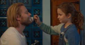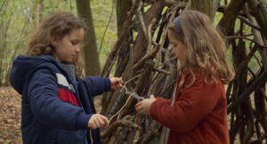 As the movie begins, 8-year-old Nelly (Joséphine Sanz) has just lost her grandmother. Before bringing us that sad news. Sciamma first starts with the love and affection that the still-living residents of the nursing home feel for the girl, and she for them. Nelly is a remarkable child, considerate to others and imbued with a sharp, inquisitive intelligence that endears her to everyone she meets, including her parents. Those two are now tasked with cleaning up the deceased woman’s house, even as Nelly’s mother (Nina Meurisse, Camille) finds the experience a heavy one, given that it’s where she grew up. She needs time to grieve the loss of her own mother, and so departs, leaving her husband (Stéphane Varupenne, Godard Mon Amour) behind to finish packing and mind Nelly. The latter might be sad to see mom go, but uses the opportunity to explore the woods.